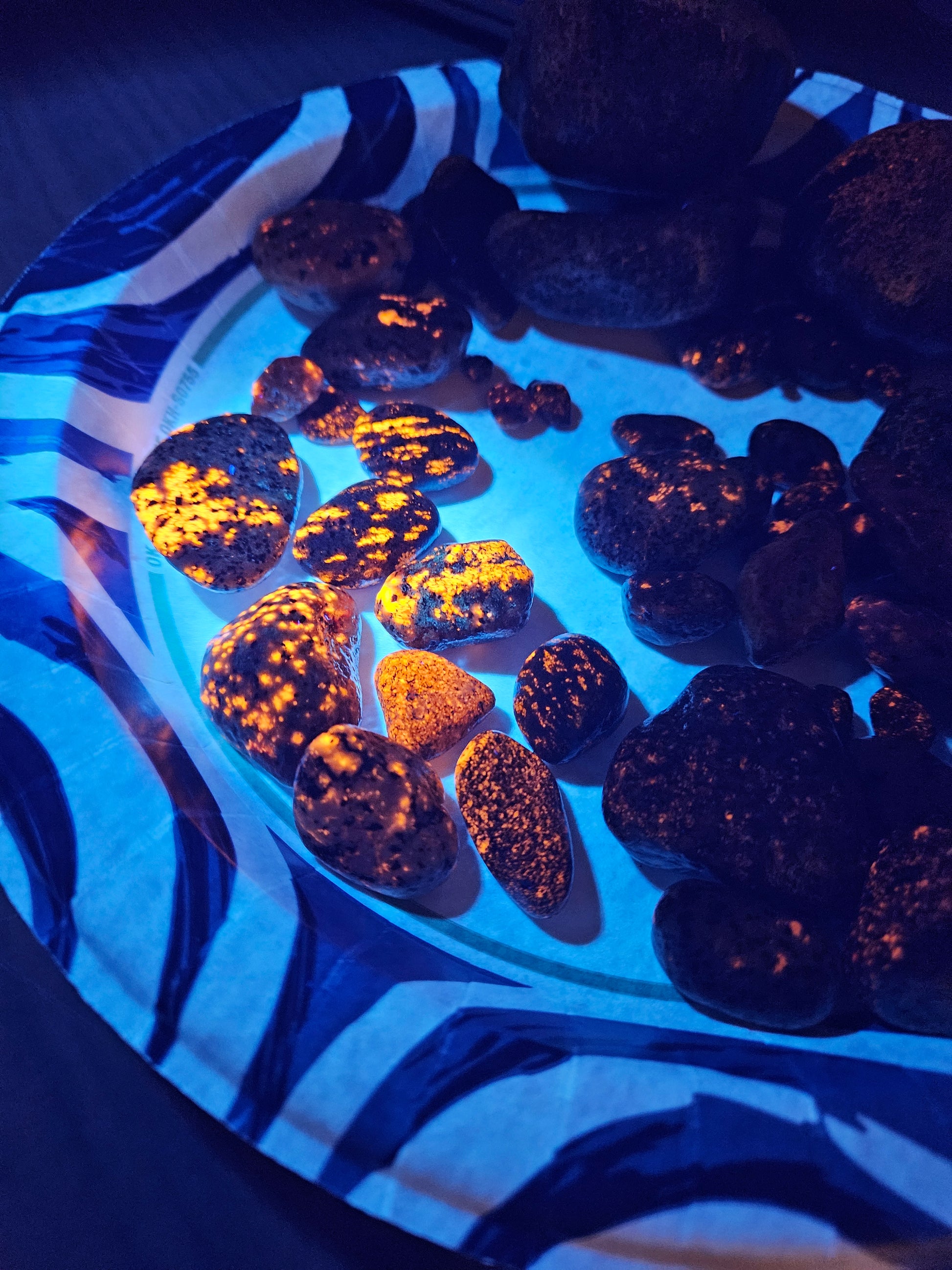 The famous Fluorescent Emberlite - Yooperstones - sodalite stones from The Shores of Lake Superior. Discovered in 2017 and thought to be around 1.1 billion years old, formed from volcanic activity and brought down from Canada during the glaciers. These are truly a magnificent fluorescent mineral.